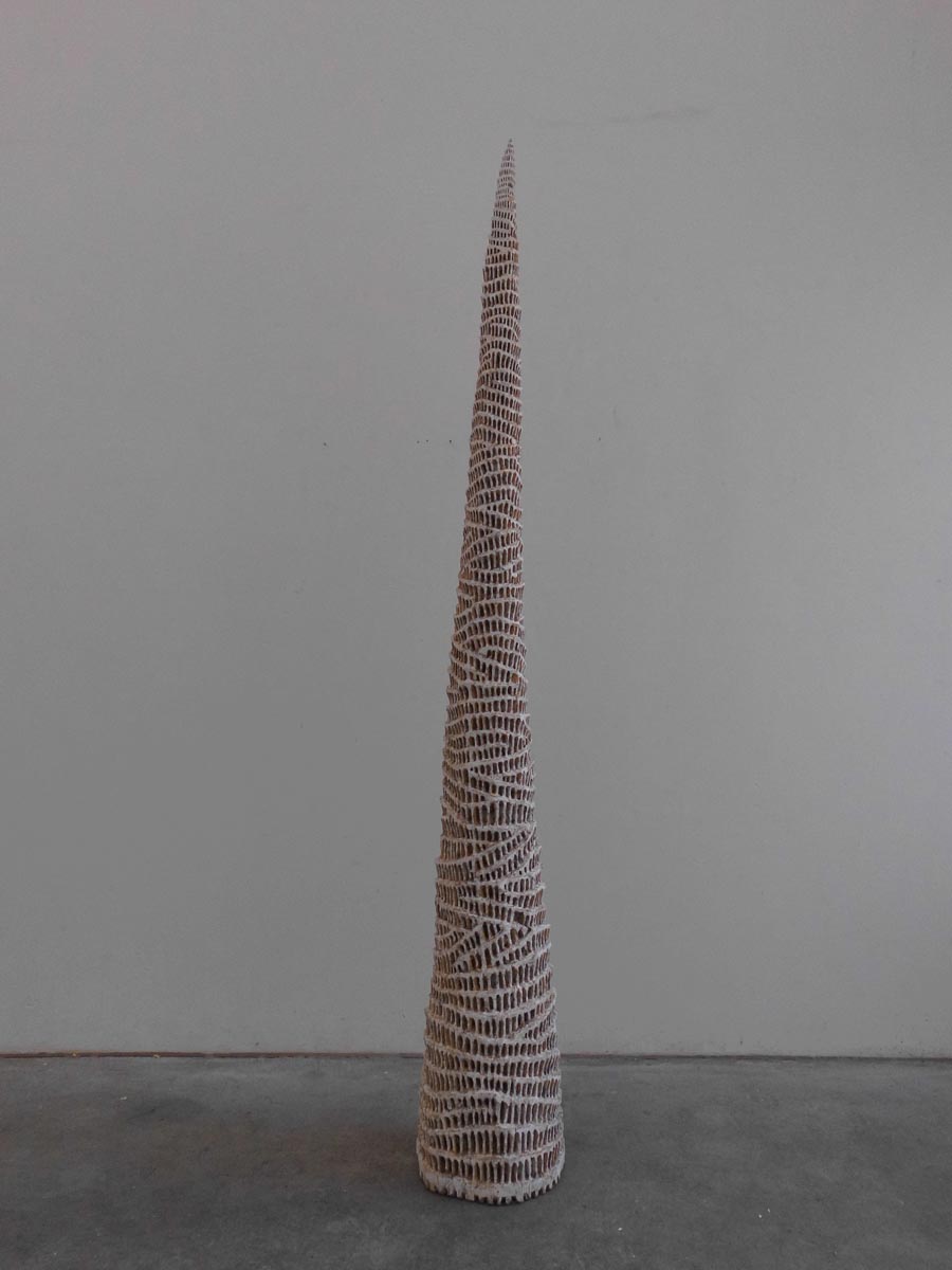 KLAUS HACK - Babel -Turm, 2015, Eiche weiß gefasst, 194,5 x42 x33 cm 2